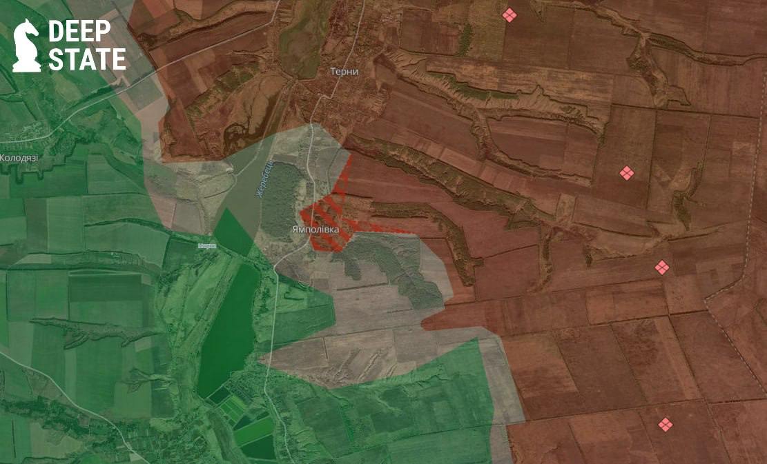 По данным паблика, россияне пытались зайти в Ямполевку сразу после занятия Тернов, после многочисленных штурмов которой нашли уязвимое место северо-восточнее села.