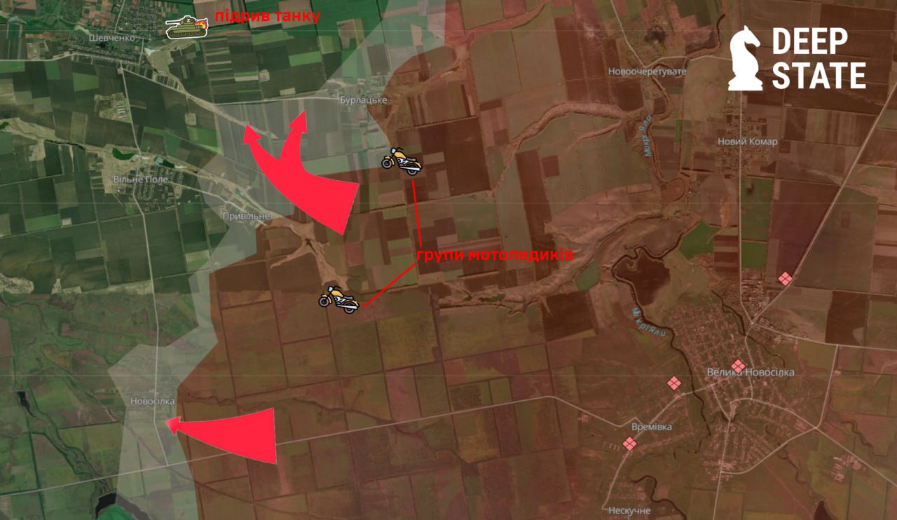 20:39 Армия РФ пытается выйти к окрестностям Шевченко возле Великой Новоселки, сообщает Deep State.