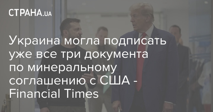 Украина могла подписать уже все три документа по минеральному соглашению с США. Об этом пишет Financial Times.