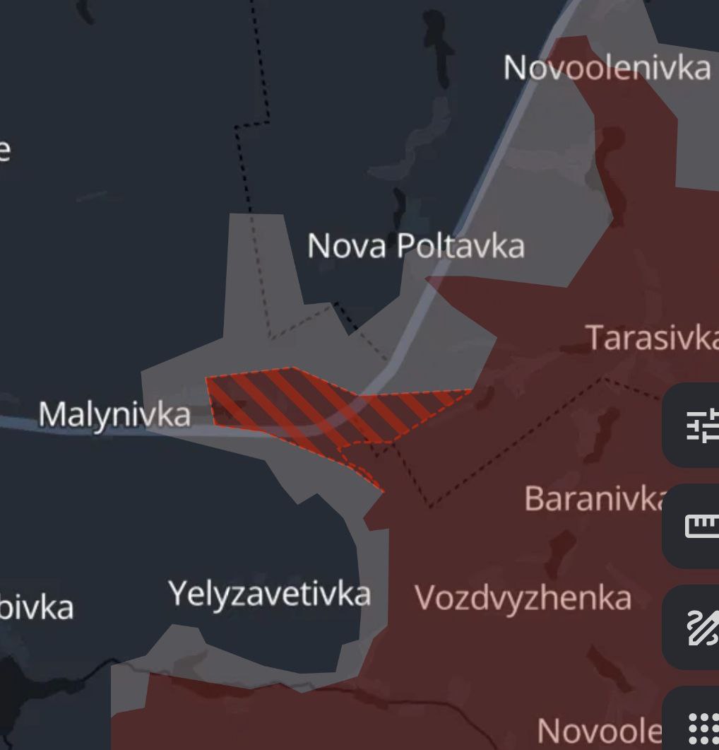 По данным паблика, россияне захватили часть села Малиновка. Украинский военный с позывным Мучной пишет, что потеряно все село.