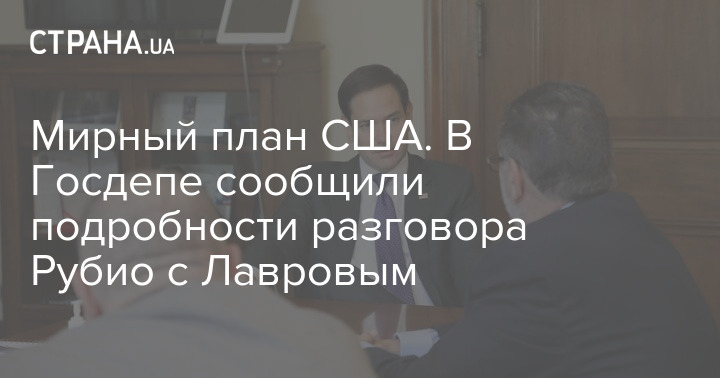 Государственный секретарь США Марко Рубио обсудил с главой МИД РФ Сергеем Лавровым мирный план по Украине, предложенный Соединенными Штатами.