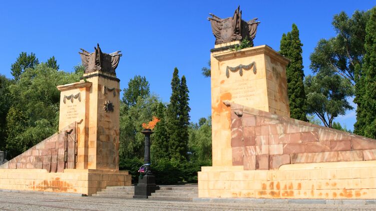 В областном центре Львовщины демонтируют колонны на входе на Холм Славы.