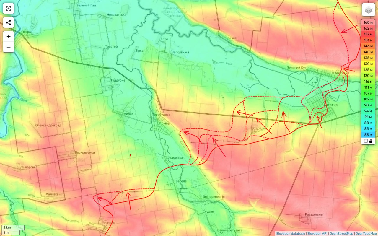 Российские паблики заявляют, что севернее их войска наступают на село Комар (западнее недавно захваченного Отрадного). А также пытаются продвинуться в Алексеевке севернее Богатыря, откуда идет прямая трасса до Новопавловки Днепропетровской области.