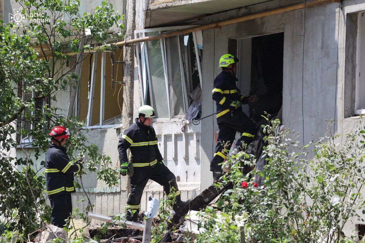 Последствия российской атаки в Луцке. Фото: ГСЧС