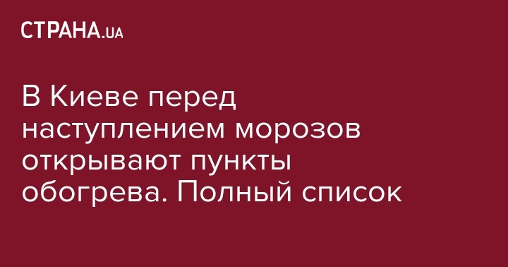 В Киеве перед наступлением морозов открывают пункты обогрева. Полный список