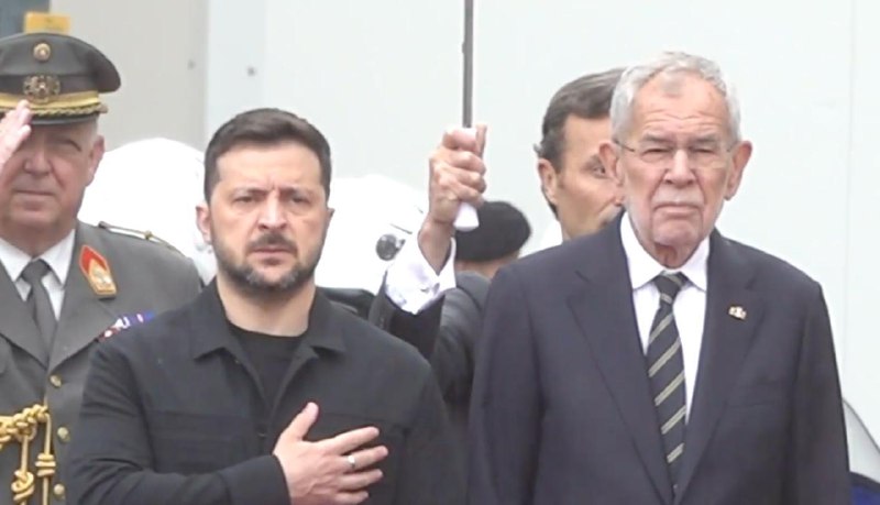 Также местные издания пишут, что Зеленский оставил свою жену под дождем в Вене. Так бульварная газета Heute описала видео встречи президента Украины с Ван дер Белленом. Авторы материала считают, что Зеленский допустил оплошность.