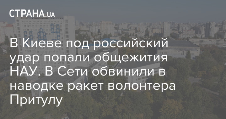 В Киеве под российский удар попали общежития НАУ. В Сети обвинили в наводке ракет волонтера Притулу