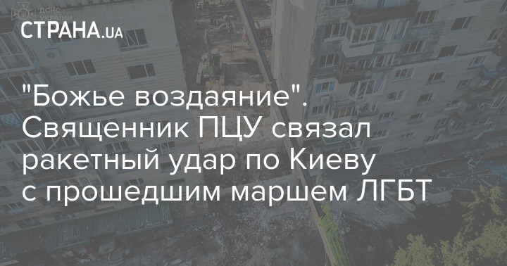 На своей странице в Фейсбуке под фотографией разрушенного ракетой дома в Соломенском районе священник написал: "Вот вам и марш "равенства"... Божье воздаяние - оно такое".