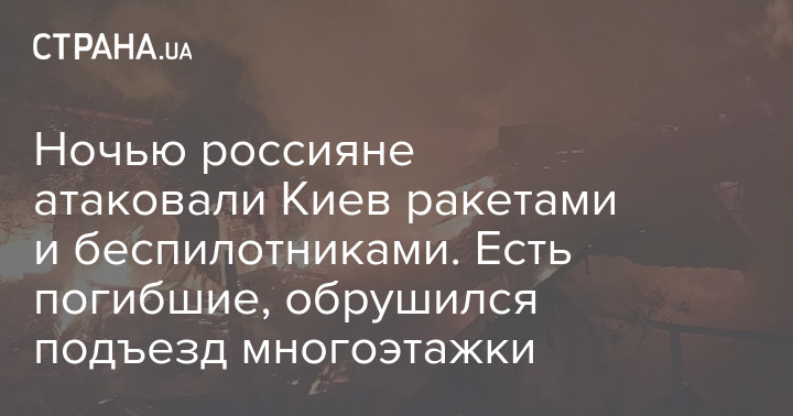 Ночью россияне атаковали Киев ракетами и беспилотниками. Есть погибшие, обрушился подъезд многоэтажки