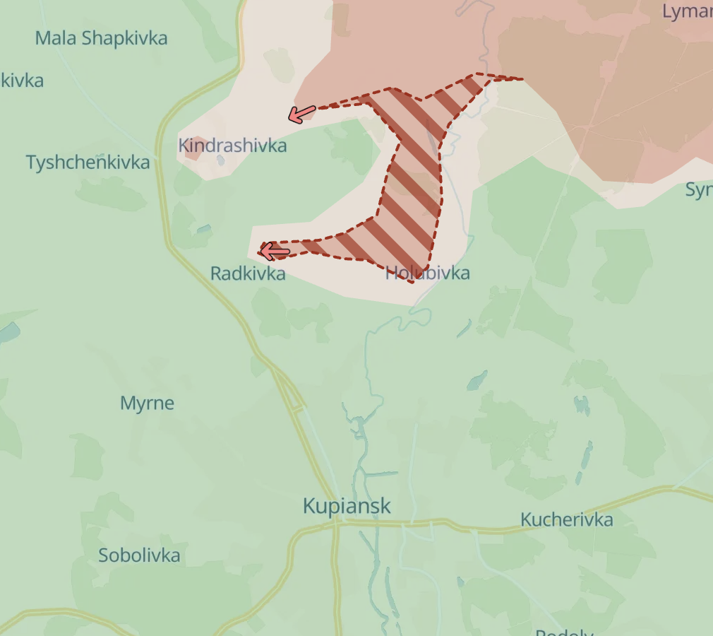 Судя по карте Deep State, до северных окраин Купянска от позиций, где закрепились подразделения РФ, осталось чуть более трех километров.