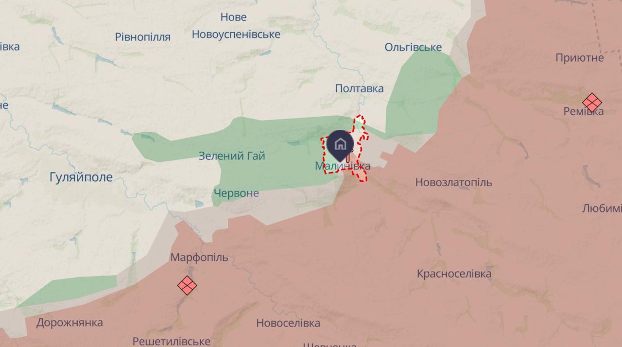 Малиновка находится на одном из направлений контрнаступления ВСУ летом 2023 года. На карте Deep State село находится частично под контролем ВСУ, частично - РФ.