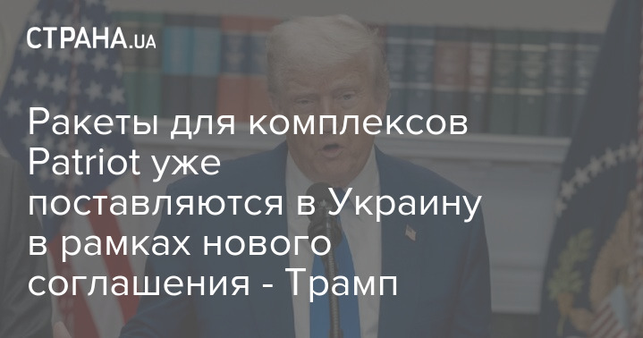 Ракеты для комплексов Patriot уже поставляются в Украину в рамках нового соглашения. Об этом заявил президент США Дональд Трамп во время общения с журналистами на авиабазе Эндрюс.