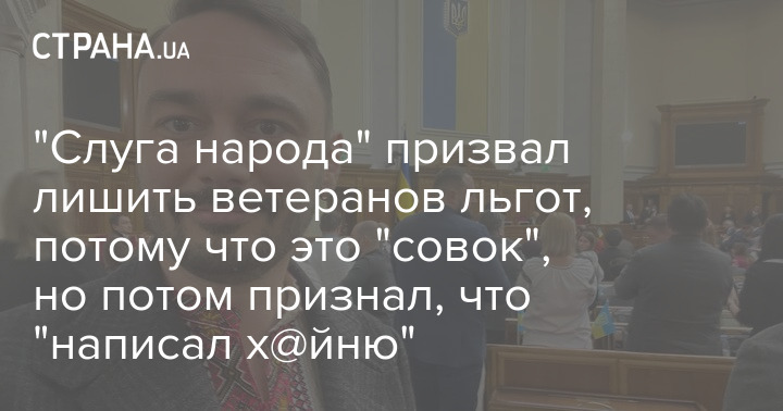 Народный депутат Украины Дмитрий Гурин из партии "Слуга народа" призвал лишить ветеранов льгот.