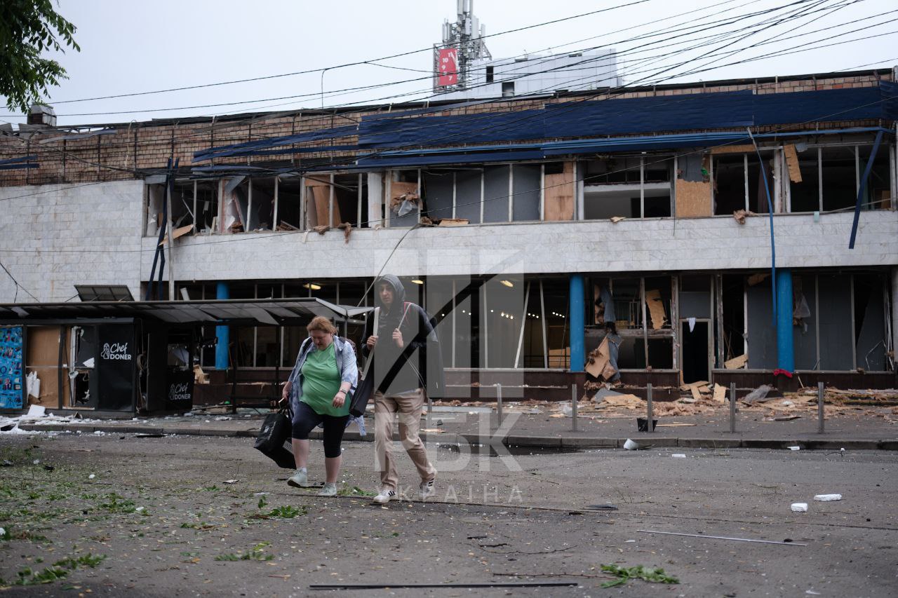 05:38 Последствия прилёта возле метро Лукьяновская в Киеве.