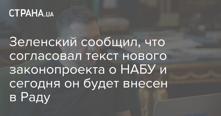 Зеленский сообщил, что согласовал текст нового законопроекта о НАБУ и сегодня он будет внесен в Раду