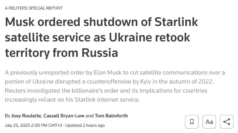 Сам Маск, комментируя слухи о возможном отключении Starlink, говорил, что "мы бы никогда так не поступили".