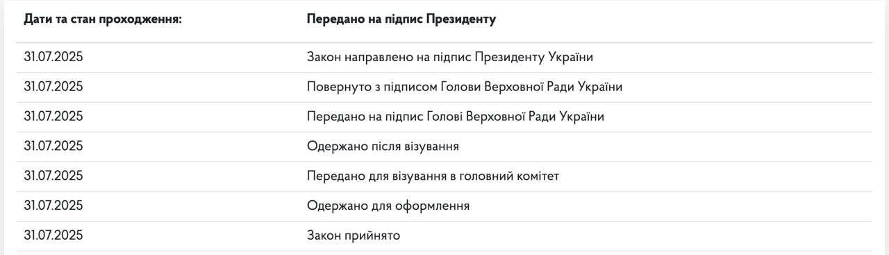 К моменту выхода новости спикер Рады Руслан Стефанчук подписал принятый законопроект, о чем свидетельствует карточка документа на сайте парламента.