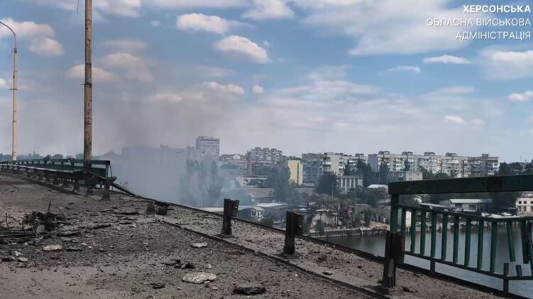 Россияне со вчерашнего дня начали наносить воздушные удары по мосту, который связывает микрорайон Остров с остальным Херсоном. Мост сильно пострадал, хотя проезд по нему еще возможен.