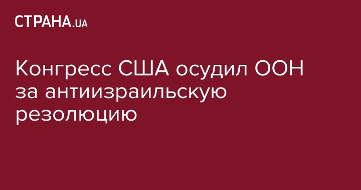 Нижняя палата Конгресса США официально осудила ООН за резолюцию, запрещающую израильские поселения в Палестине. Об этом сообщает The Wall Street Journal.