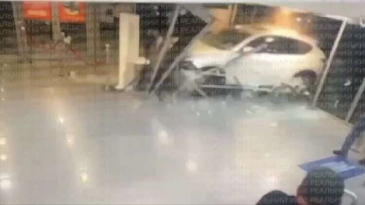 Торговый центр "Оушен Плаза" в столице Украины протаранил автомобиль.