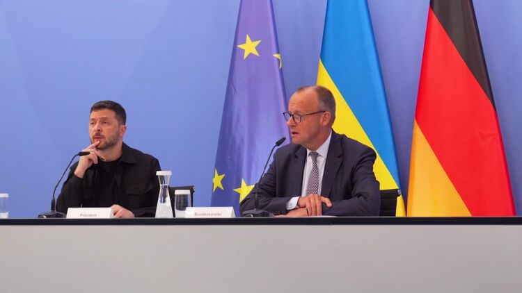 Владимир Зеленский и Фридрих Мерц. Скриншот видео
