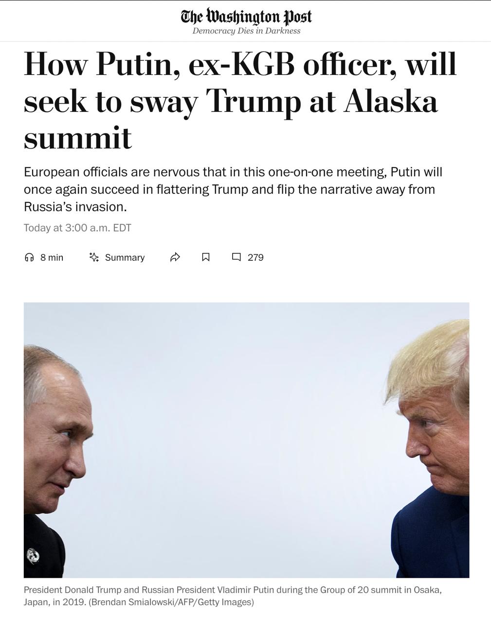 Сама газета так представляет себе встречу: "В одном кресле будет сидеть американский лидер, чей импровизированный подход часто оставляет детали на усмотрение других. В другом кресле будет сидеть Путин, бывший разведчик, который, по словам официальных лиц, обладает энциклопедическими знаниями поля боя и тщательно продуманной стратегией, позволяющей вывести из равновесия коллег-лидеров".