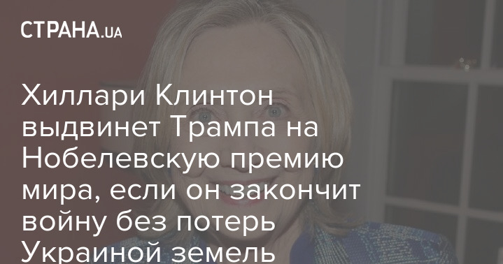 Бывший кандидат в президенты США от Демократической партии Хиллари Клинтон заявила, что выдвинет главу Белого дома Дональда Трампа на Нобелевскую премию мира, если тот сможет закончить войну в Украине без уступок территории РФ.