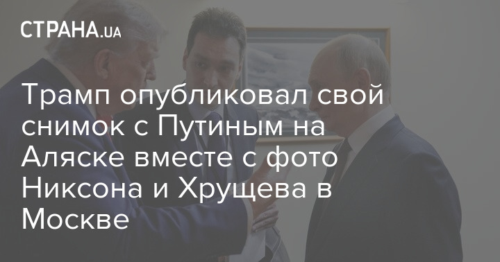 Президент США Дональд Трамп опубликовал коллаж из двух фотографий: на одном он главой Кремля Владимиром Путиным на Аляске, на второй - встреча в июле 1959 года на тот момент американского вице-президента Ричарда Никсона при президенте Дуайте Дэвиде Эйзенхауэре и первого секретаря ЦК КПСС Никиты Хрущёва.