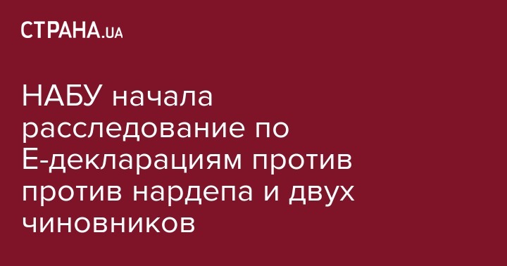 Национальное антикоррупционное бюро (НАБУ) начало расследование против еще одного депутата Верховной Рады и двух председателей районных государственных администраций по результатам анализа Е - деклараций. Об этом говорится в сообщении пресс-службы бюро.