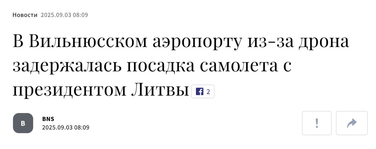 Отметим, что недавно в Эстонии упал украинский ударный дрон. А в июле в Литву залетал беспилотник, похожий на российский "Шахед".