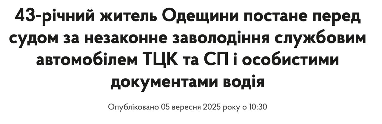 В Одесской области мужчина угнал автомобиль ТЦК. Оставив автомобиль на окраине он ушел домой, забрав из салона сумку водителя с личными документами.
