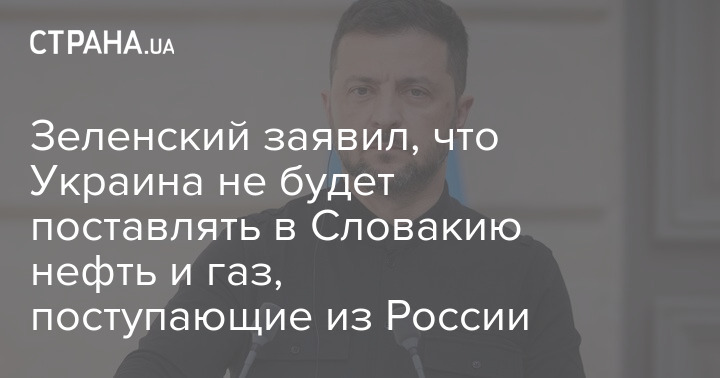 Зеленский заявил, что Украина не будет поставлять в Словакию нефть и газ, поступающие из России