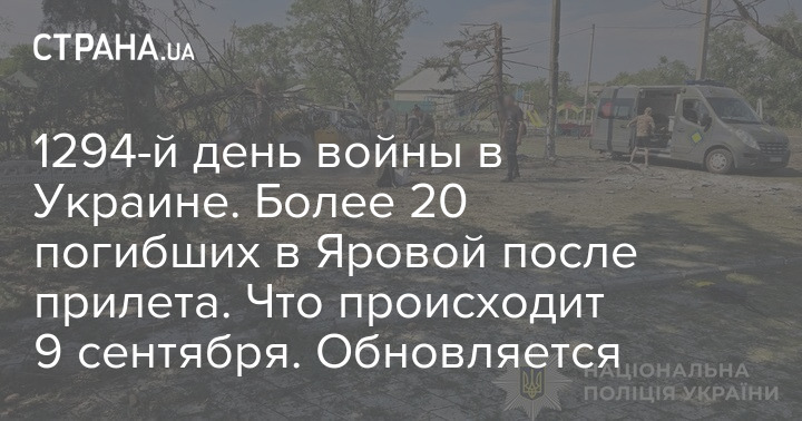 Во вторник, 9 сентября, в Украине идет 1294-й день войны с Россией.