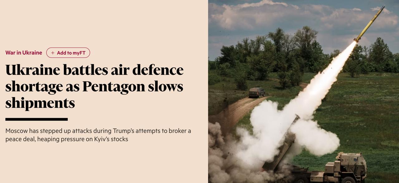 В последние месяцы поставки из США были нерегулярными и меньшими, чем ожидалось, после директивы Пентагона об экономии средств. Ракеты, закупаемые напрямую у производителей в рамках "Инициативы содействия безопасности Украины" (USAI), производятся партиями, что приводит к возникновению перерывов между поставками. Поставки ПВО от Европы по новой программе замещения американским оружием "только частично начались".