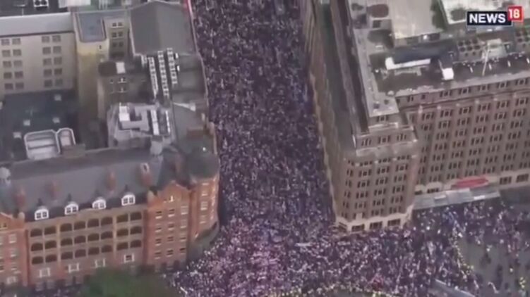 В Лондоне проходит многотысячный митинг против исламизации Британии и против приема мигрантов из исламских стран.