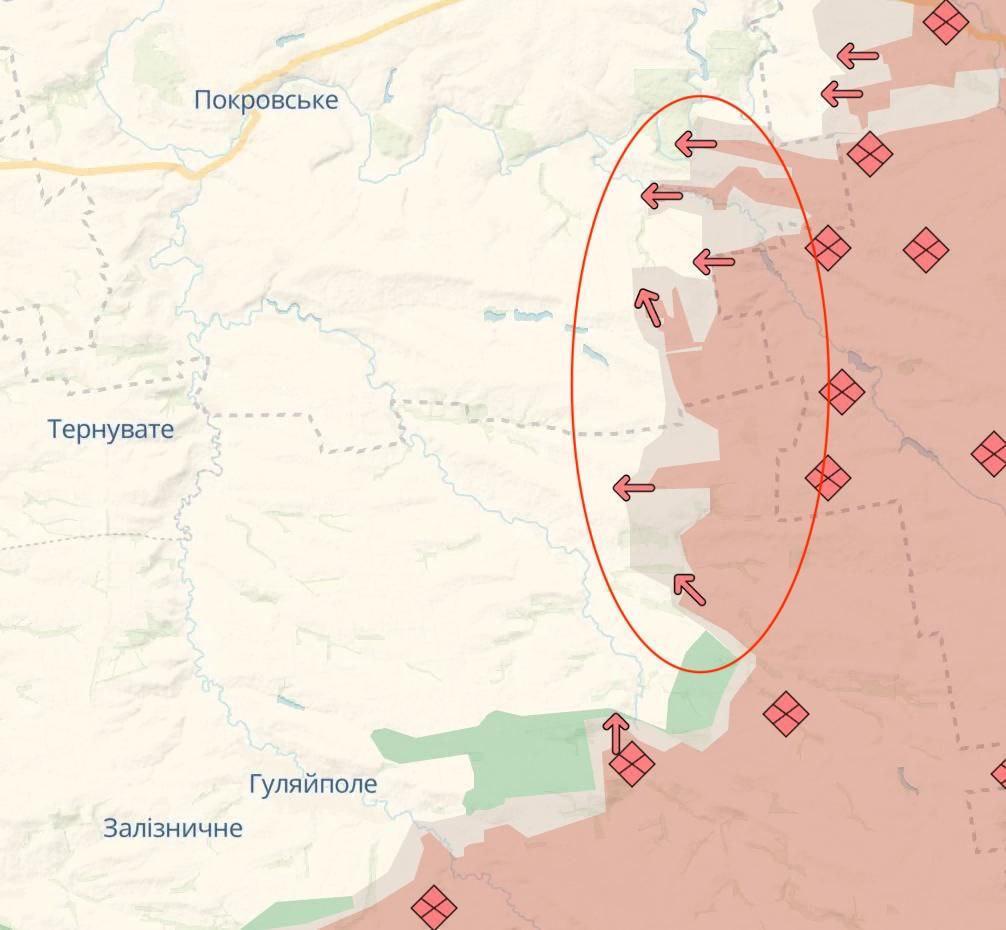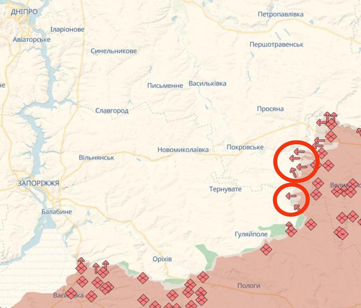 Тем не менее украинские военные телеграм-каналы фиксируют продвижение РФ на Днепропетровщине, пусть и не стремительное, но ежедневное. Бои идут на двух основных участках.