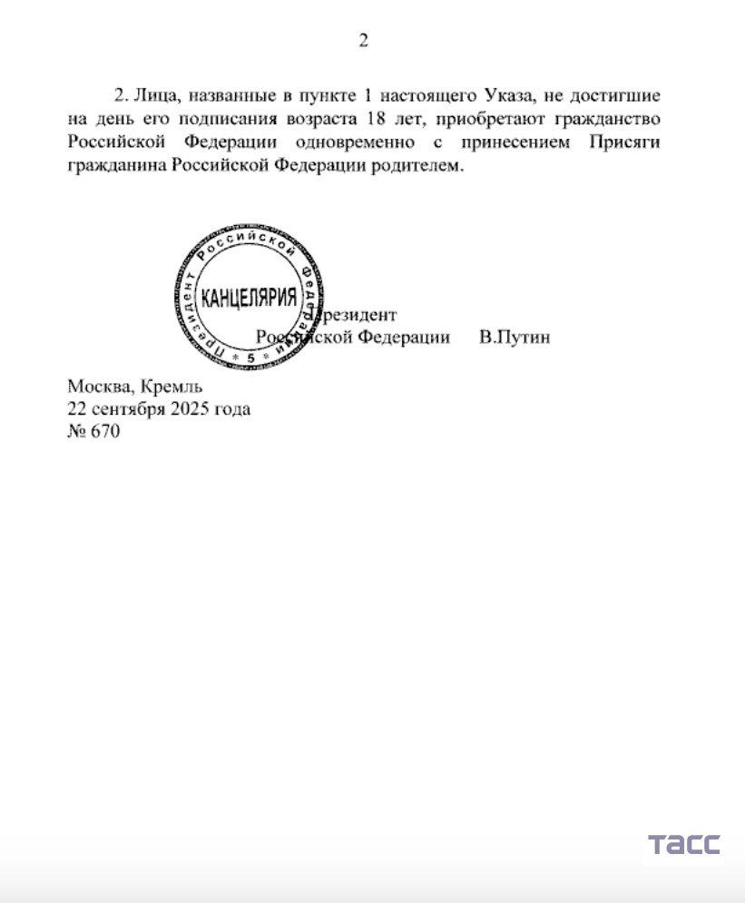 Об этом сообщают российские издания и публикуют соответствующий указ президента РФ Владимира Путина.