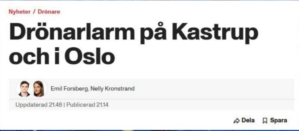 Накануне, как сообщало издание AftonBladet, и в Норвегии раздалась тревога из-за дронов над военной территорией - крепостью Акерсгус в Осло.