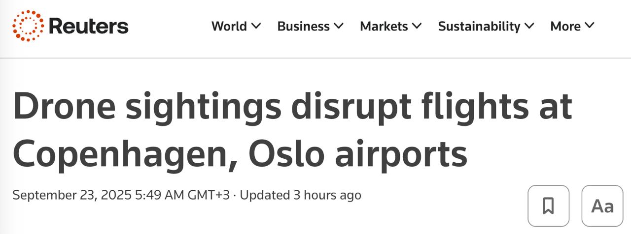 Напомним, накануне сообщалось, что международный аэропорт в столице Дании Копенгагене был закрыт из-за сообщений об угрозе беспилотников. Заявлялось о временной приостановке всех рейсов.