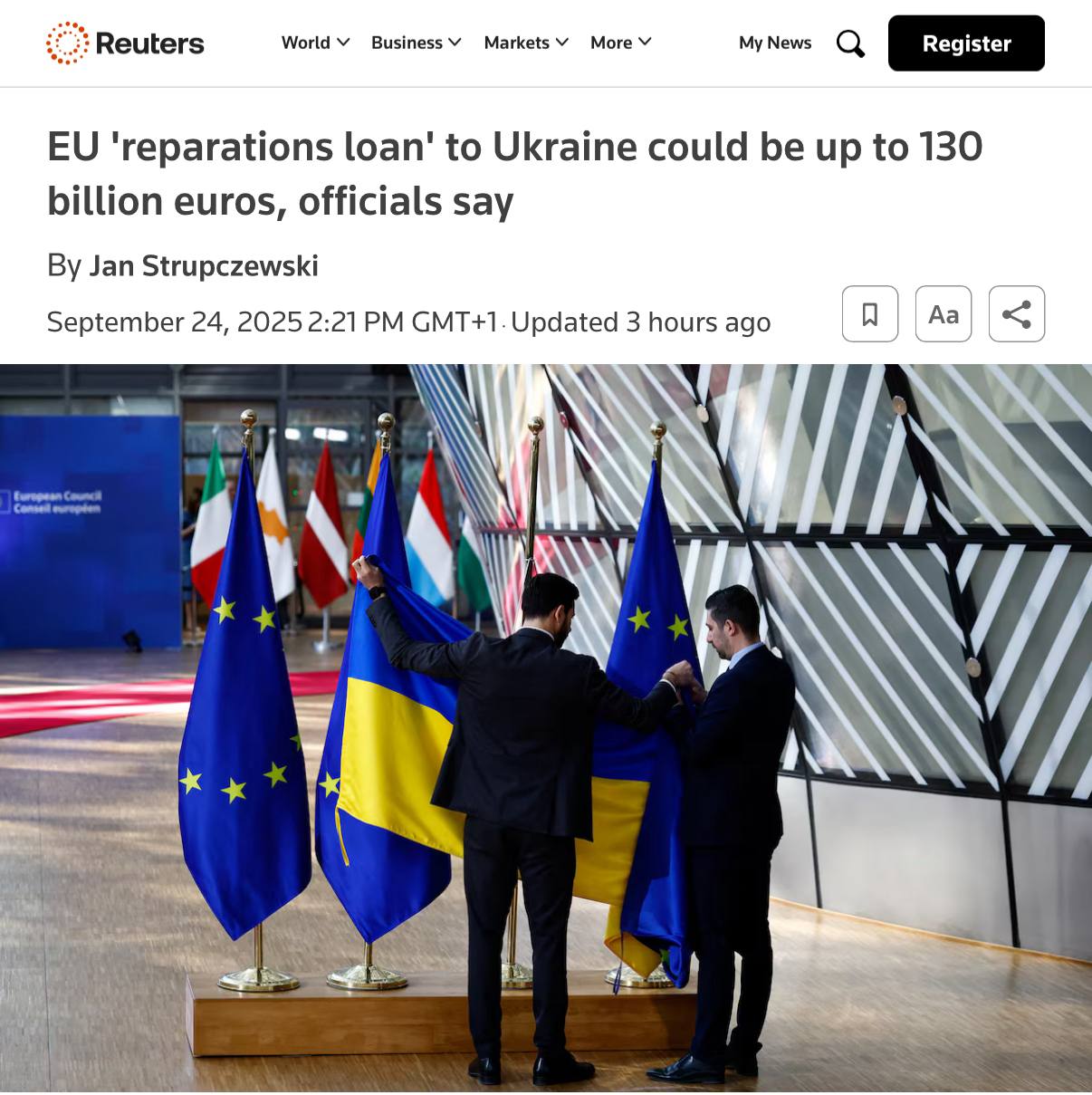 Как известно, большая часть российских активов на сумму около 210 млрд евро, хранящихся в Европе, находится в бельгийском центральном депозитарии ценных бумаг Euroclear. 175 млрд евро активов в Euroclear уже достигли срока погашения и превратились в наличные, которые могут стать основой для кредита.