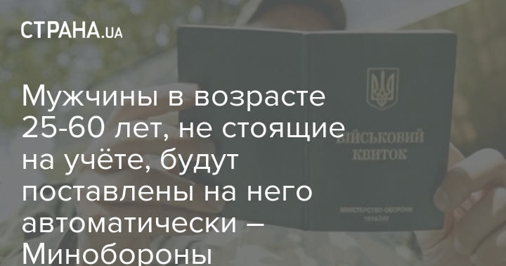"Все граждане Украины мужского пола от 25 до 60 лет, которые не состояли на военном учете без законных оснований, будут поставлены на такой учет автоматически. Это снизит количество ручных операций и потребность посещать ТЦК", – заявляет Минобороны.