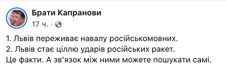 Писатель Капранов обвинил в ракетном ударе по Львову русскоязычных переселенцев
