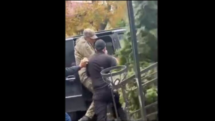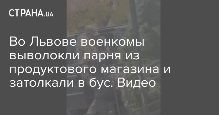 Во Львове военкомы выволокли молодого человека из продуктового магазина и затолкали его в бус.
