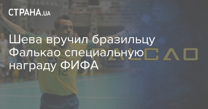 Тренер сборной Украины и ее лучший бомбардир Андрей Шевченко вручил специальную международную награду "Золотой мяч за успехи в карьере" игроку в футзал бразильцу Фалькао (Алессандро Роза Виейра).