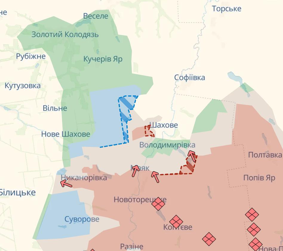 Армия РФ в свою очередь продвинулась в Днепропетровской области южнее Покровского.