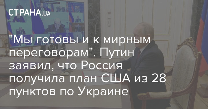 В Кремле получили план США из 28 пунктов по Украине. Он может быть положен в основу окончательно мирного урегулирования.