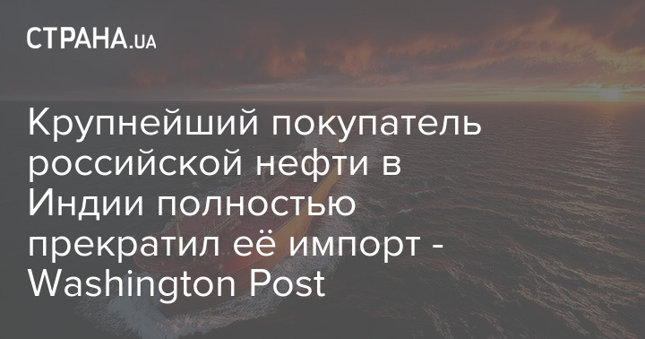 Крупнейший покупатель российской нефти в Индии полностью прекратил её импорт - Washington Post