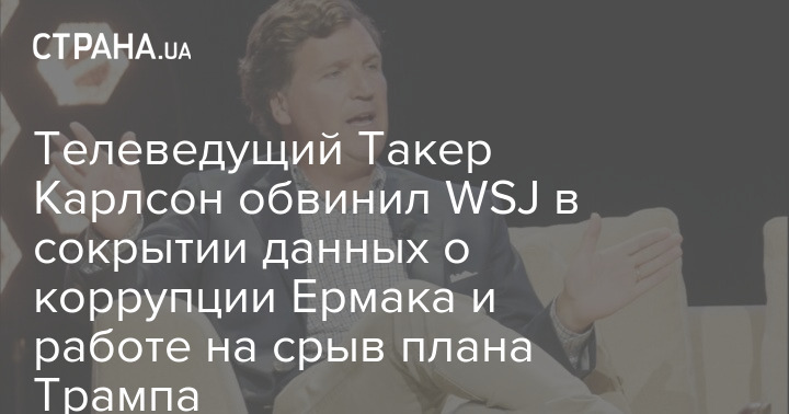 Американский телеведущий Такер Карлсон обвинил газету The Wall Street Journal в сокрытии информации о коррупции главы Офиса Президента Украины Андрея Ермака и в работе на срыв мирного плана президента США Дональда Трампа.