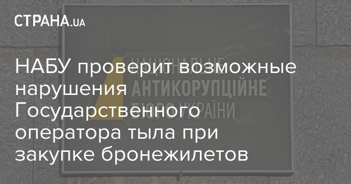 НАБУ проверит возможные нарушения Государственного оператора тыла при закупке бронежилетов