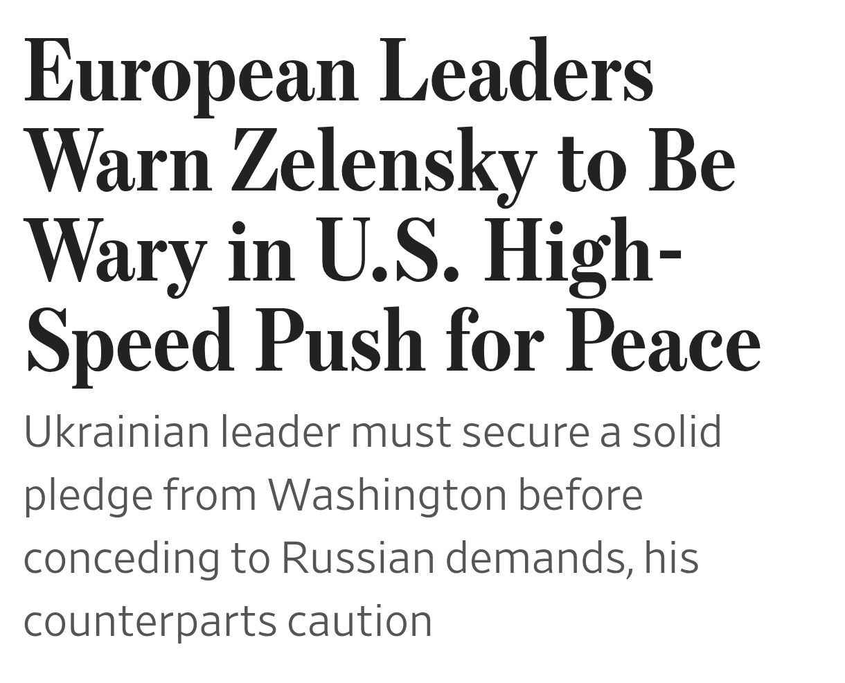 В упомянутом разговоре кроме Зеленского принимали участие президент Франции Эмманюэль Макрон, канцлер Германии Фридрих Мерц и глава Европейской комиссии Урсула фон дер Ляйен. Европейцы настаивали на том, что именно Вашингтон должен играть ключевую роль в вопросе гарантий для Украины.